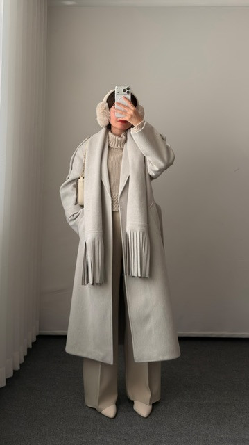 رنگ این پالتو طوسی خیلی روشنِ گرم (Light Warm Grey) است؛ طیفی خنثی، لطیف و مدرن که بین طوسی روشن و ایوری قرار میگیرد و ظاهری مینیمال، تمیز و هماهنگ با ترندهای ۲۰۲۶ ایجاد میکند. این رنگ بهراحتی با بژ، کرم، سفید، قهوهایهای ملایم و حتی رنگهای تیرهتر ست میشود.