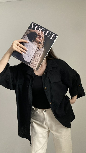 پشت شومیز ساده است،جلو دو جیب دارد،